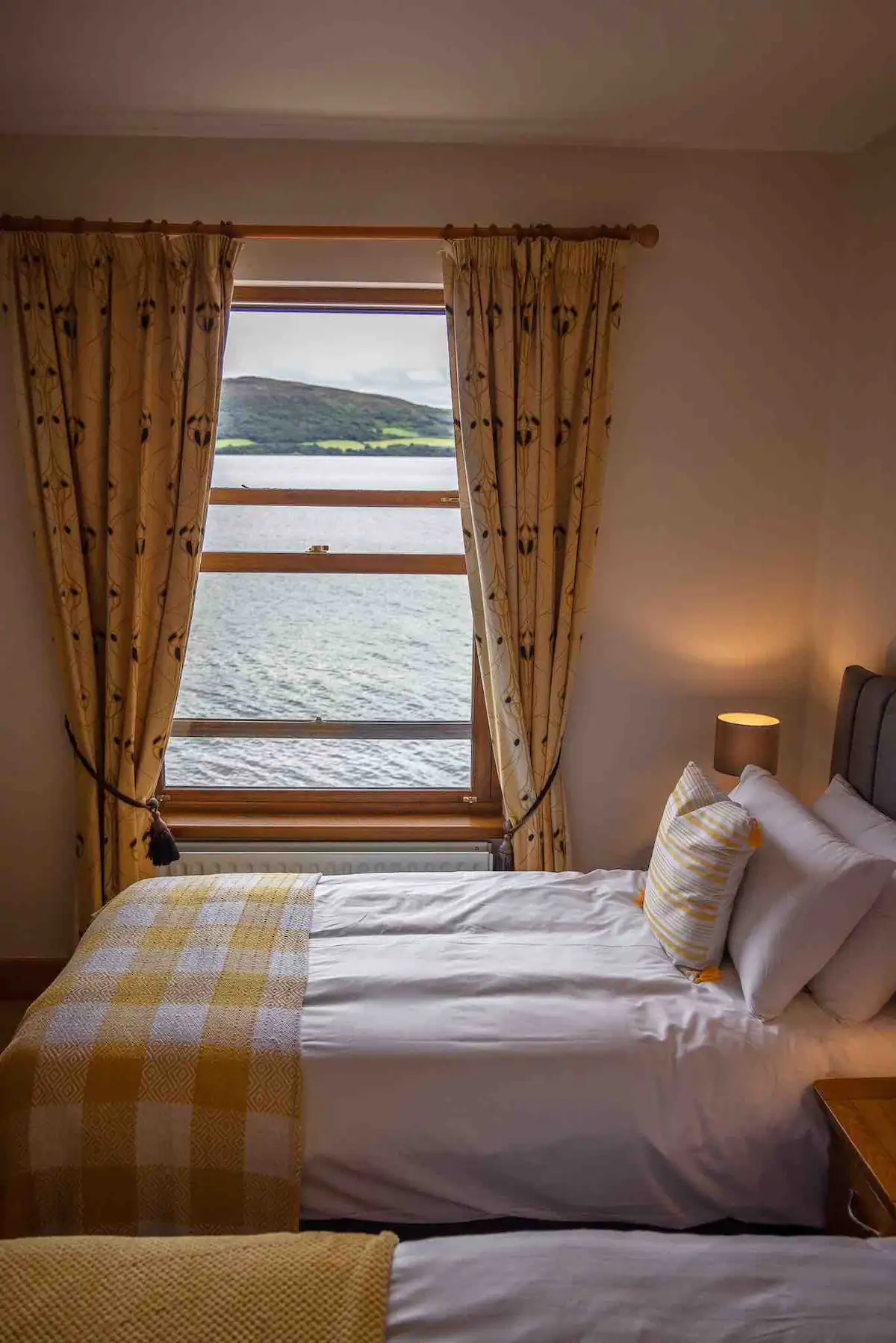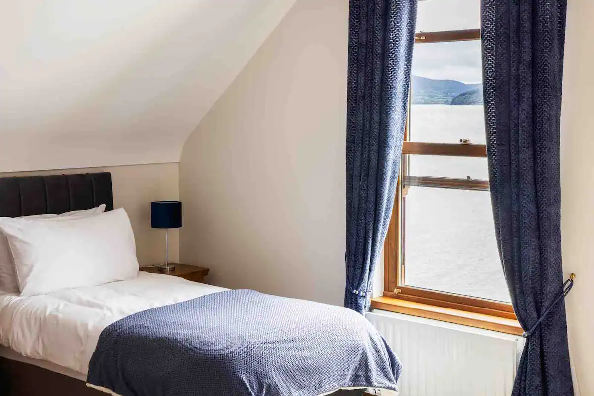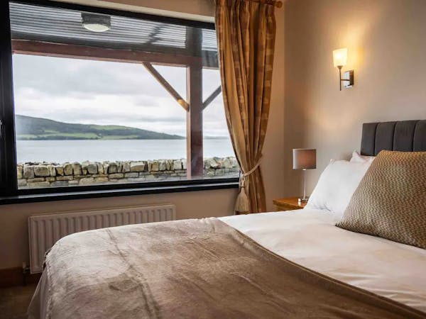Our Queen Earl's Suite, located on the upper level, features a luxurious Super Queen bed & 2 single beds, a flat-screen television with luxury amenities. With stylish furnishing and spectacular views of Lough Swilly, our room provides a serene escape with the familiarity of home.