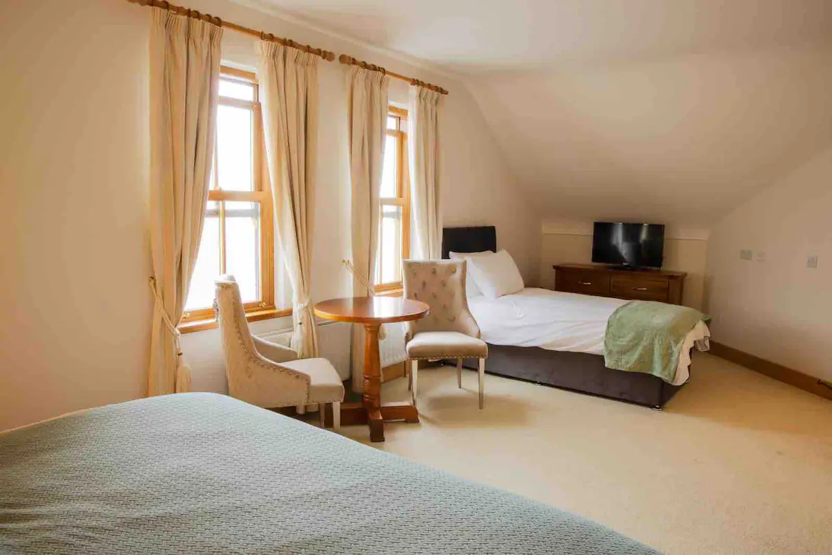 Our Kinnegar Triple Room, located on the ground floor, features a luxurious King bed & single bed, a flat-screen television with luxury amenities. With stylish furnishing, our room provides a serene escape with the familiarity of home.