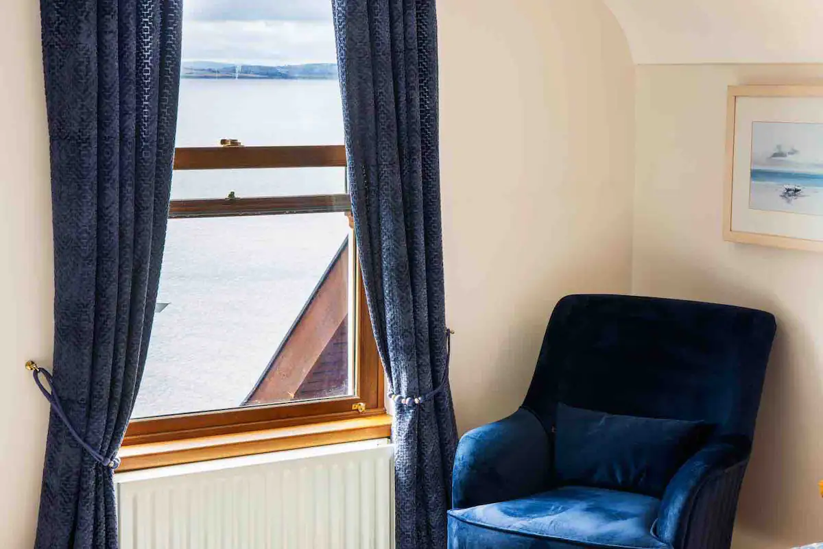 Our Deluxe Martello Triple Room, located on the lower level, features a luxurious King bed & single bed, a flat-screen television with luxury amenities. With stylish furnishing and spectacular views of Lough Swilly, our room provides a serene escape with the familiarity of home.